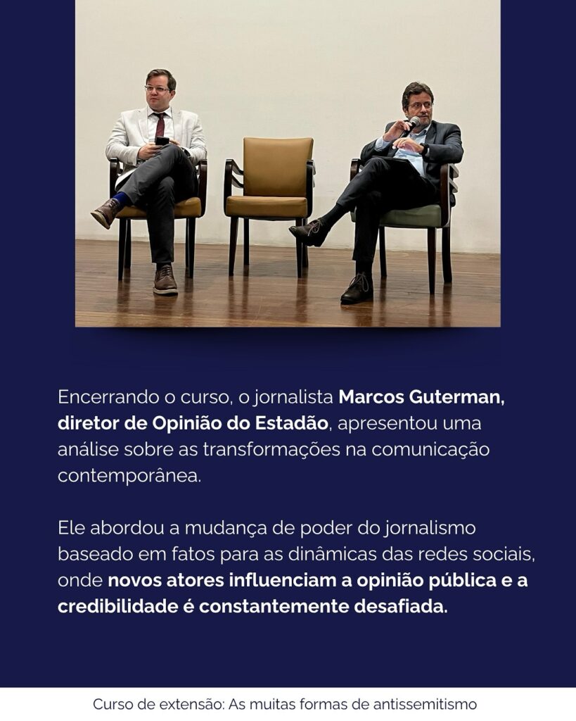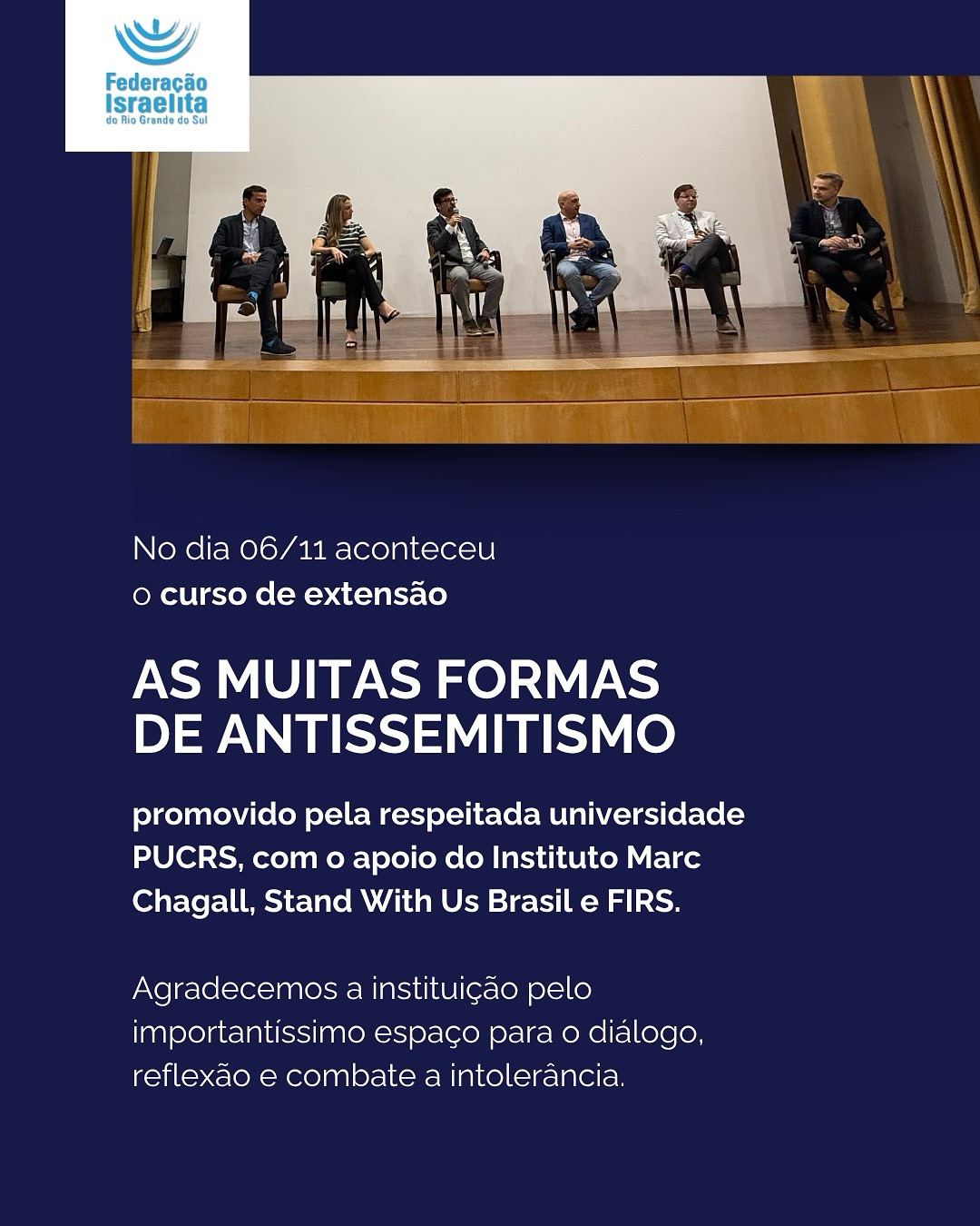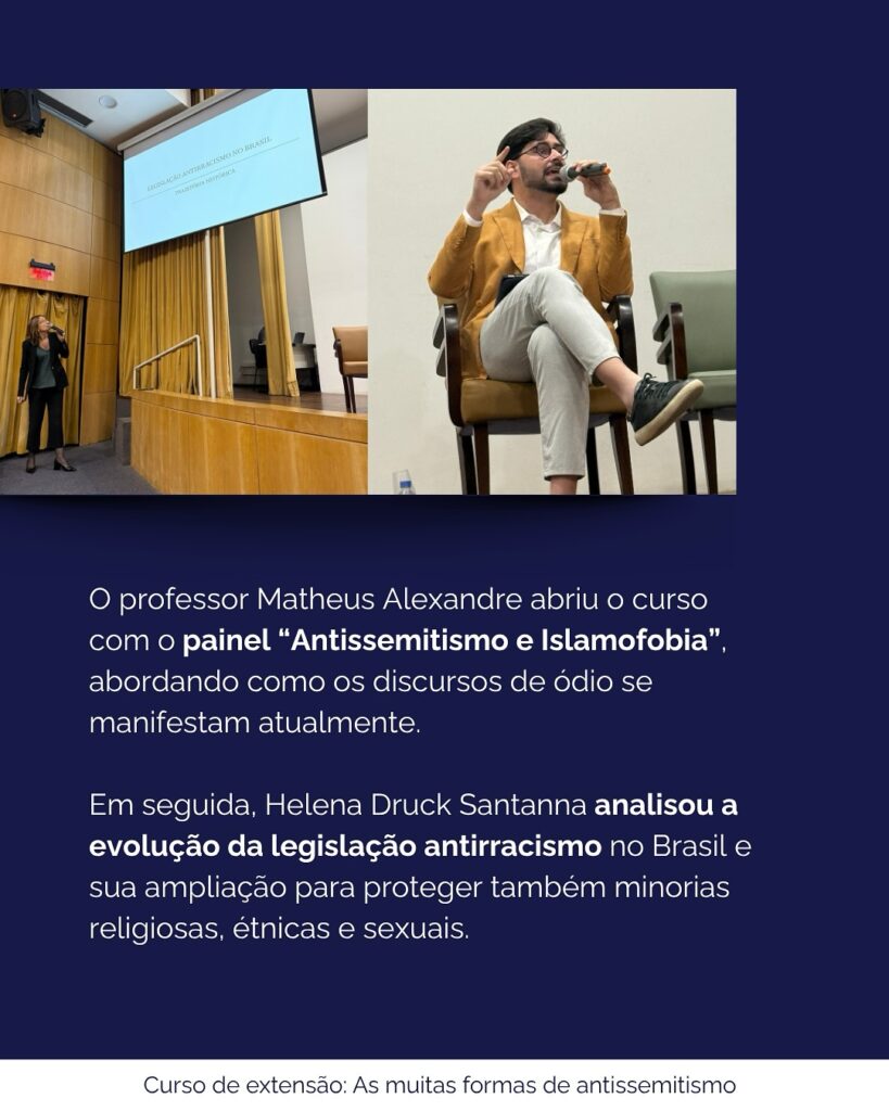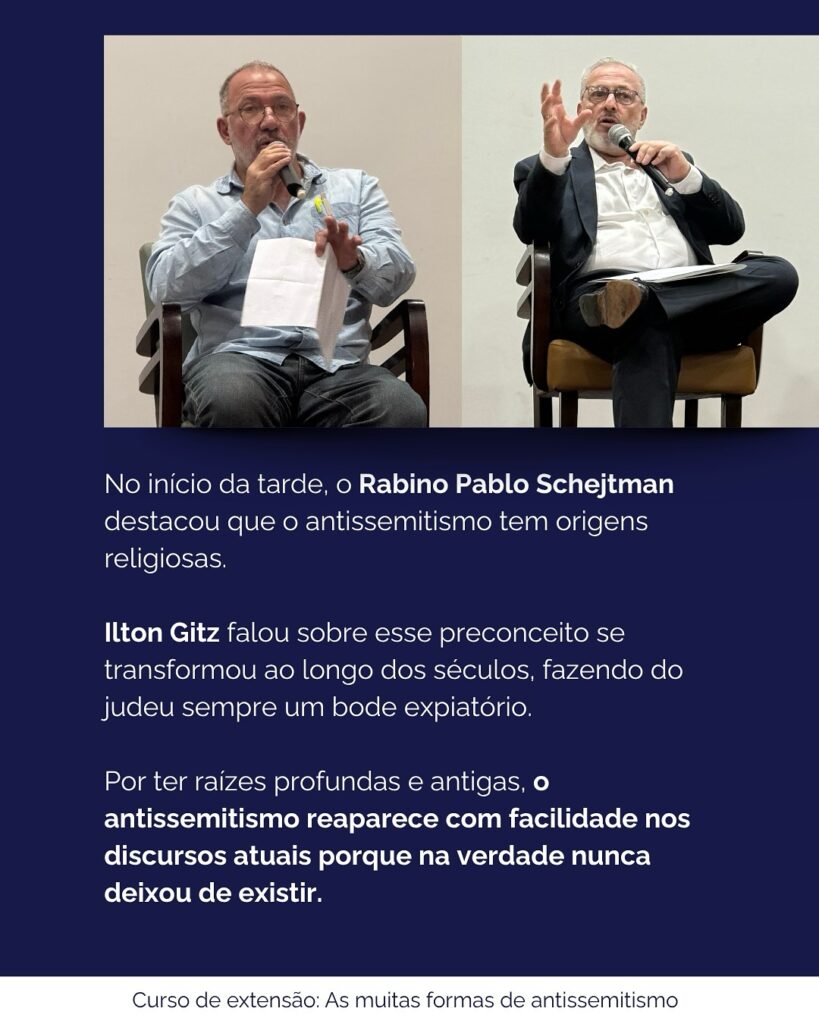 No dia 6 de novembro/2025, aconteceu na PUCRS o curso de extensão “As Muitas Formas de Antissemitismo”, um importante espaço de diálogo e reflexão sobre o combate ao ódio e a promoção do entendimento entre os povos.